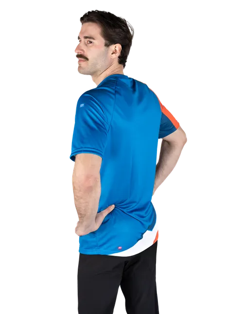 Maillot hybride manches courtes adapté à toutes les disciplines du freeride (descente, DH, motocross, enduro).